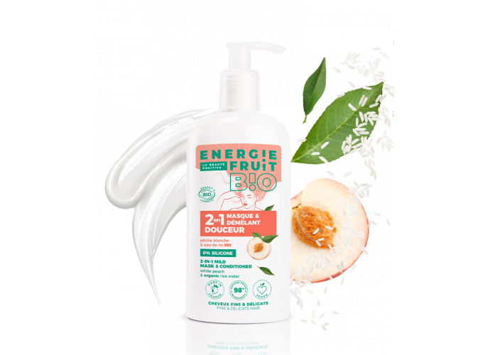 Mască și balsam 2 în 1 – piersici albe și apă de orez